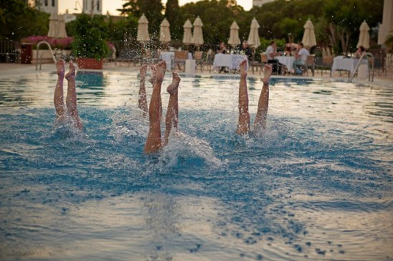 Bailarinas de natación sincronizada te deslumbrarán con sus impresionantes shows y coreografías. Este equipo de acróbatas del agua no solo hacen coreografías plenamente sincronizadas en el agua y saltos increíbles, también juegan con el fuego danzando dentro y fuera de la piscina.